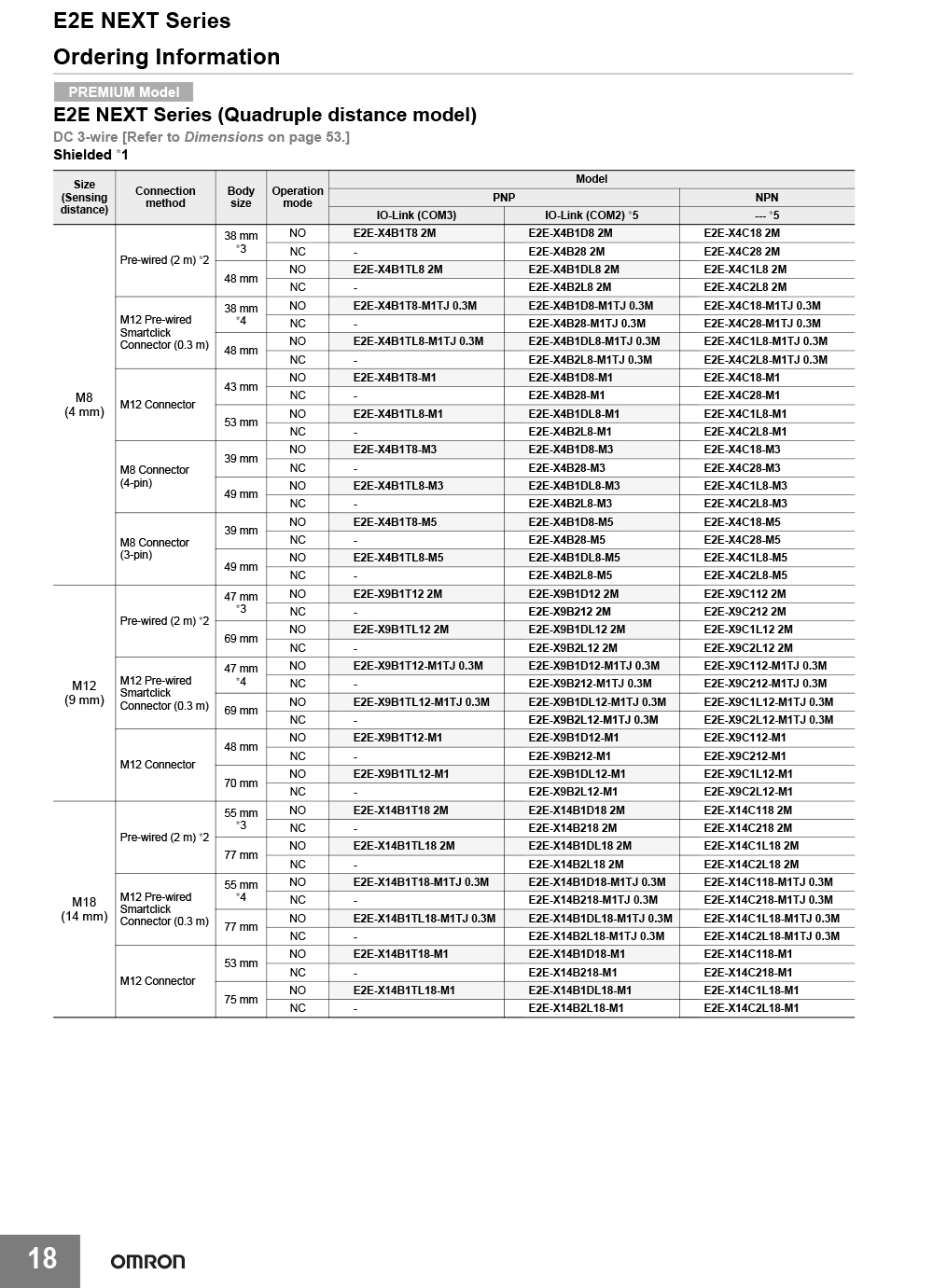 Proximity Sensor OMRON E2E-X5C118 5M Input 10-30VDC 3-wire Sensing distance 5mm Output NPN NO Size M18